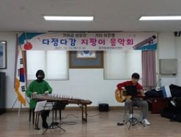 가야금 연주자 성유진 씨(홀가분스튜디오 대표)와 기타 리스트 이은명 씨(한사랑치과 원장)의 재능기부로 시작된 음악회는 국악과 캐롤을 연주하며 흥겨운 시간을 선사했다.